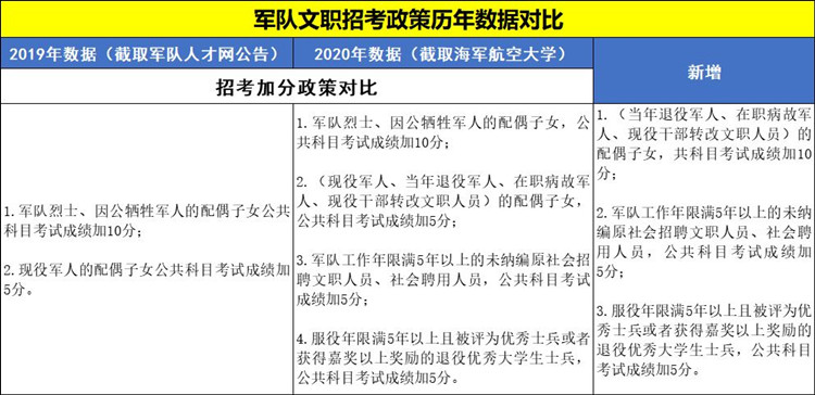 2020年軍隊文職考試預(yù)公告陸續(xù)發(fā)布!今年招考變化頗多,招錄人數(shù)增加、加分群體范圍擴(kuò)大、筆試內(nèi)容有調(diào)整、福利待遇增多、免試政策、戶口政策……